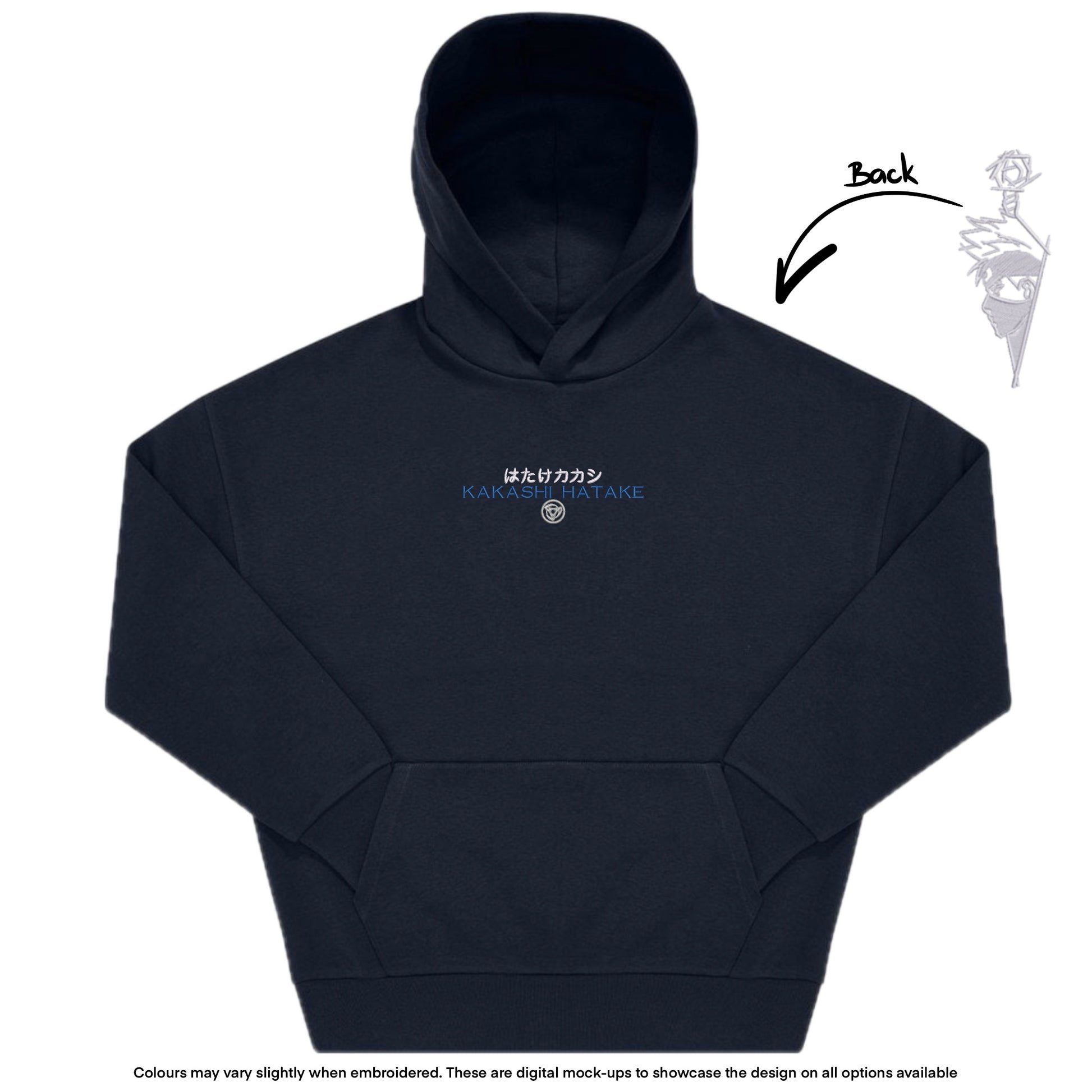Premium embroidered lettering design at the front, & 7inch Kunai design at the back!